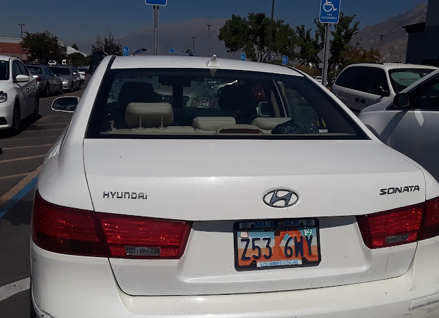 A picture of our car in the temple parking lot. We to Sam's Club and bought some needed supplies. We put our purchase in the trunk. There were a lot of cars were lined up to get gas. We then drove to Costco.