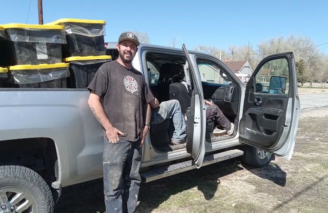 He started planting. There was braided wire laying on the floor. Every time we would walk through the greenhouse, we would get our feet tangled in the wire. He wound the wire around two nursery pots. We took out to the grape vines and hooked it to a T post on the west end and stretched it to a turnbuckle on the east end. Robert's friend came and helped with the wire.Robert's friend brought some fruit trees.